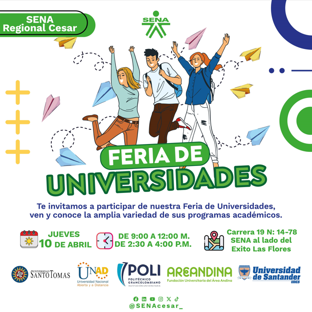 Te invitamos a participar en la Feria de Universidades para conocer los programas de formación a los cuales puedes acceder homologando la formación del SENA.